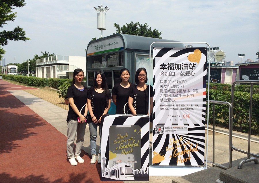 2015年8月8日,le saunda 及CNE 特别打造独一无二的3D幸福专列于广州正式起航。本次活动大使—古天乐先生型格出场,携一众模特精彩走秀,让嘉宾们在虚实之中感受本季鞋履的非凡特色。在“幸福大使”古天乐先生的见证下,莱尔斯丹集团将社会各界爱心捐献的书本送去指定的山区学校,让更多孤贫儿童得到关爱。